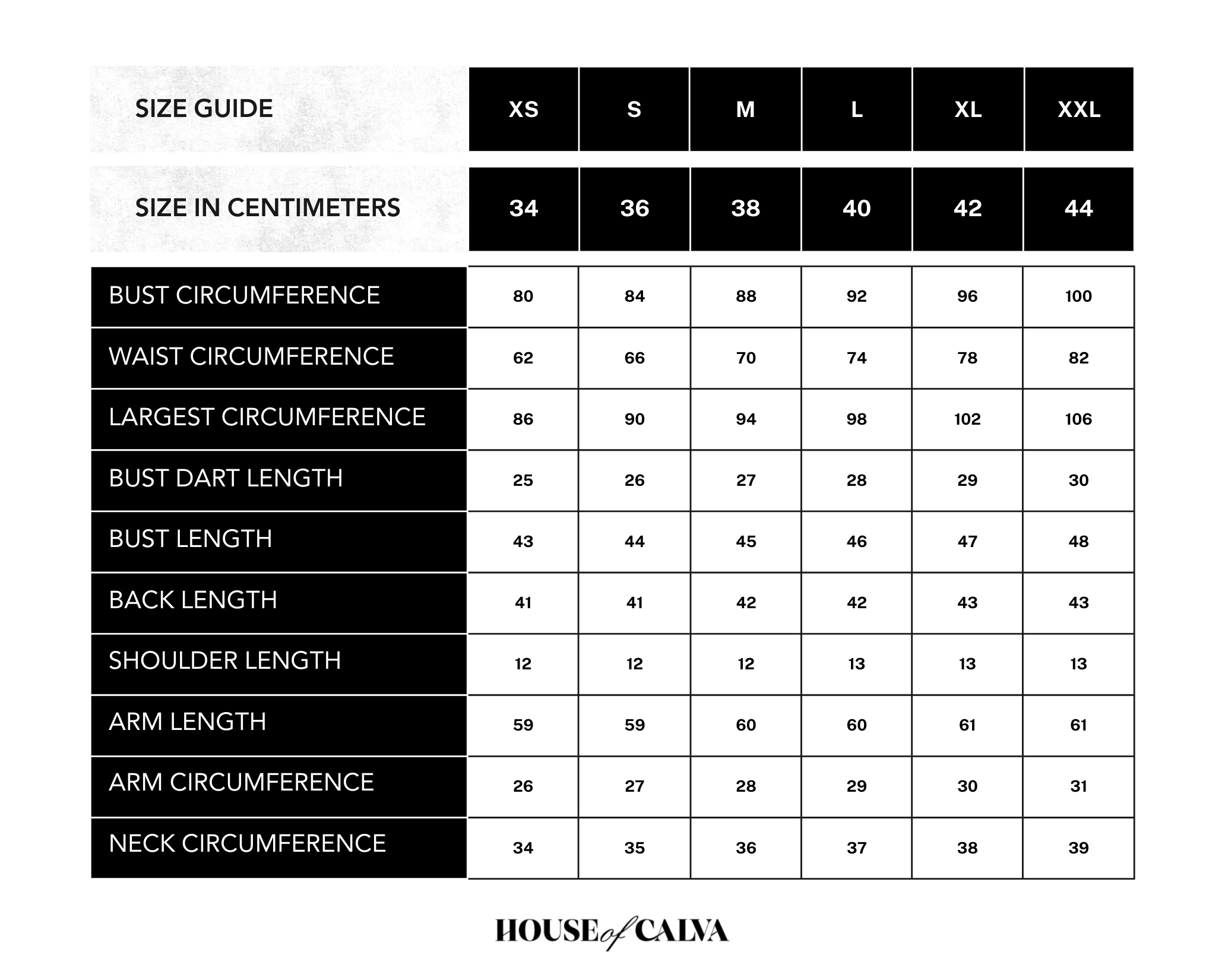 The measurements on our size chart are clearly presented to assist you in finding the ideal fit, guaranteeing a seamless and confident shopping experience.